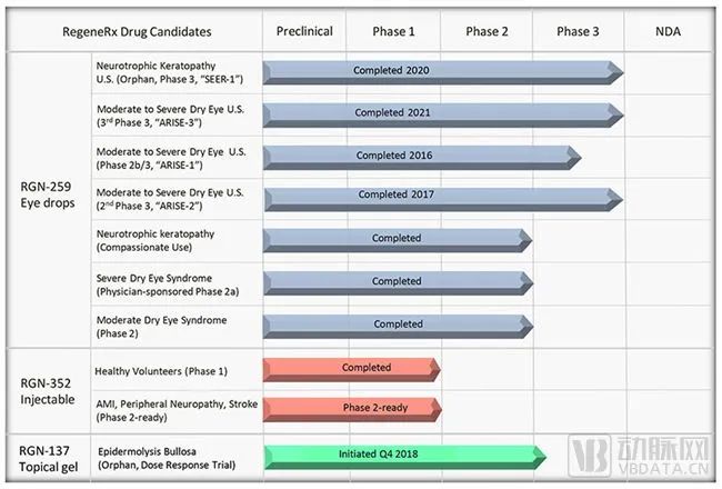 RGN-259为公司的首要开发项目,是一种基于Tβ4的无菌且无防腐剂滴眼液,可治疗干眼病(DED)和神经营养性角膜炎(NK)。