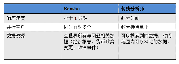 AI未来替代人工的代表案例,除了众所周知的特斯拉还前面提到的Siri与Alexa之外,还有在美国资本市场较火的金融行业AI——Kensho。