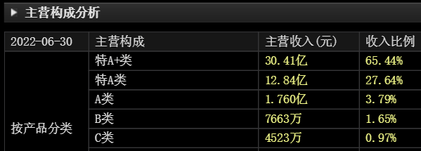 02、特A+产品占比65.44%较去年底增加0.41%,省外营收占比未突破7%