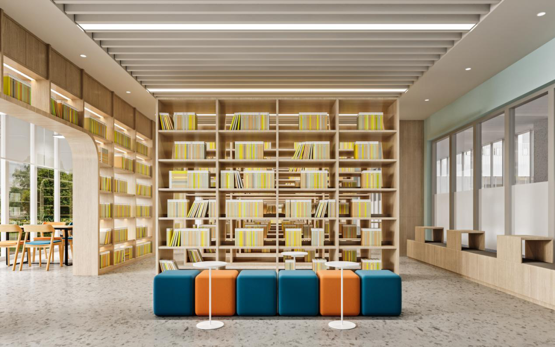 馆内采用木色的书架,搭配丰富色彩的座椅,打破传统图书馆的印象,坐在其中,可以感受到满满的书香气息扑面而来。