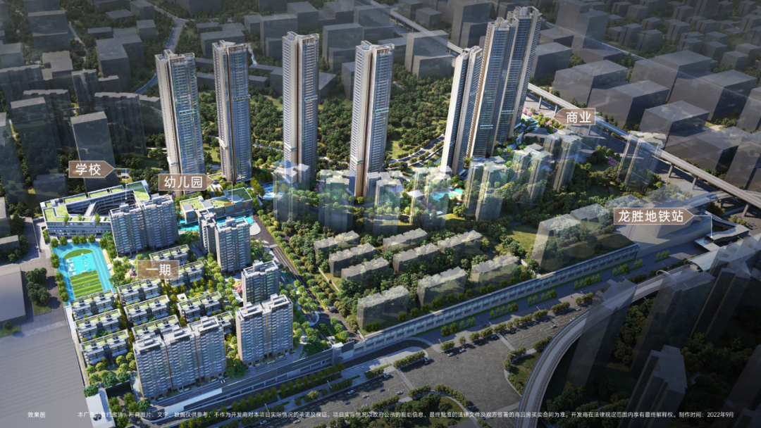 4号线龙胜地铁站之上,由深铁置业打造的超低密社区深铁珑境花园就呈现于此,项目旁边则是占地面积3.8万㎡的学校。