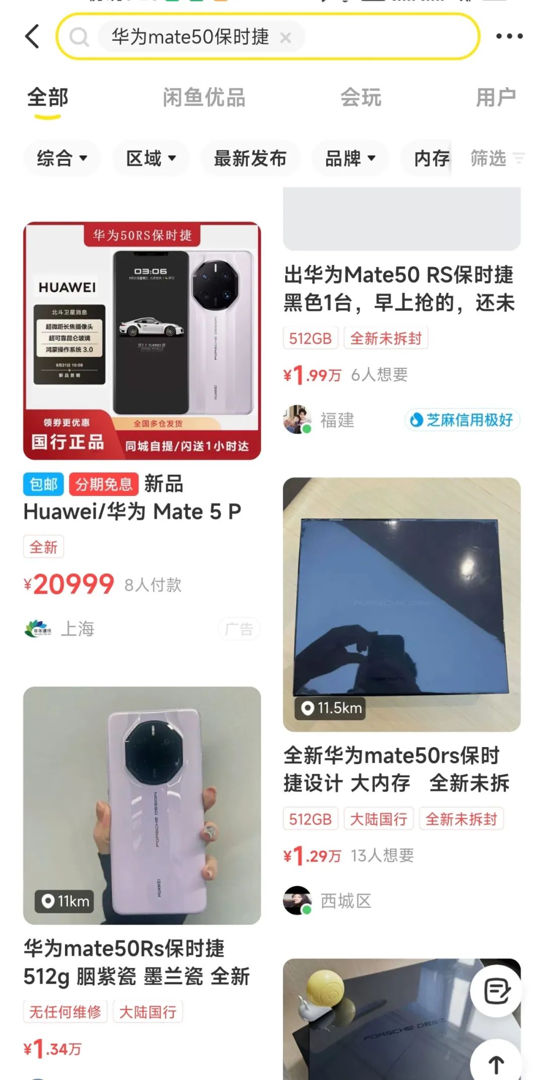 ▲某三方平台上华为Mate50保时捷版本价格