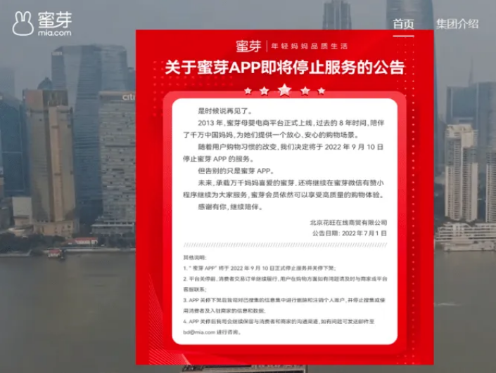 前不久,母婴商城蜜芽App已停止服务。此前,蜜芽表示,App关停下架后,将对已搜集的信息集中进行删除和注销个人账户,并停止搜集或使用消费者及入驻商家的信息和数据。