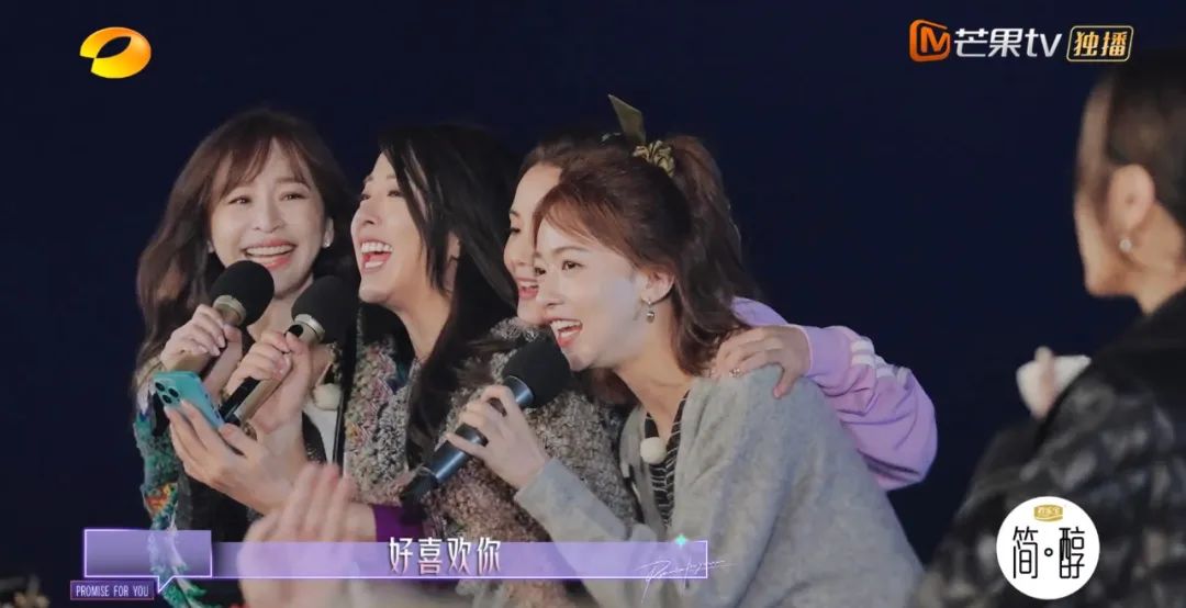 当看到《浪姐3》后再聚首的王心凌、黄小蕾、蔡卓妍、钟欣潼、吴谨言合唱《当你》,姐姐们亲密无间地互相喊着“好喜欢你”,多少观众在她们身上感受到犹如0713快男般的老友情深。