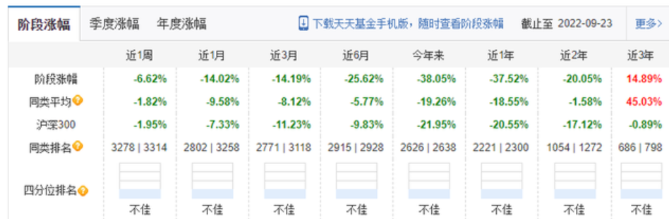 在2019、2020年取得亮眼成绩后,进入2021年以来,伴随着半导体板块大幅回调,诺安成长混合的净值也出现了大幅回撤;而到了2022年,在已经大幅回撤的背景下,诺安成长混合的跌势仍未停止,截至9月22日收盘,诺安成长混合的年内跌幅已经高达38.05%。