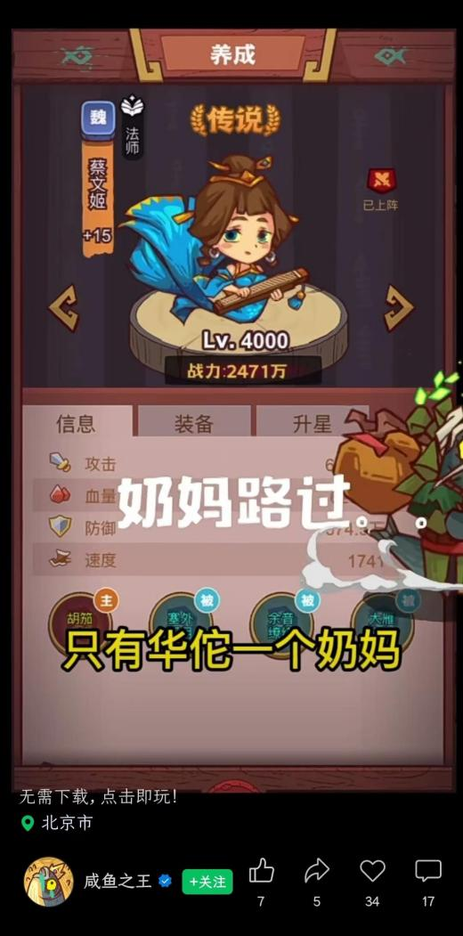 以《叫我大掌柜》为例,视频号内容多为“效果广告素材”,项目组通过二次加工后直接上传,以至于相关视频内容的质量整体一般。而另一款知名小游戏《咸鱼之王》视频号内容更加简洁,直接采用了投放的素材作为视频内容,而且在标题内容直接明了,只是强调“无需下载、点击即玩”等关键词。