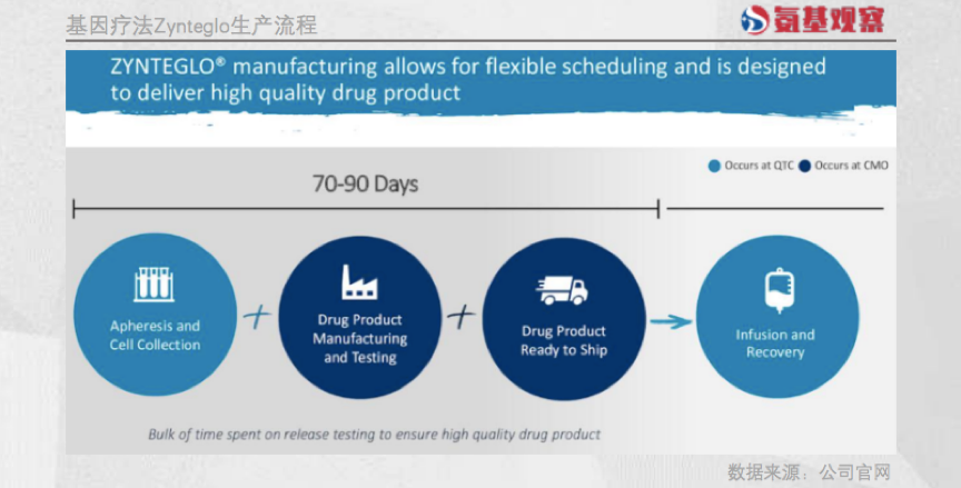 根据Bluebird披露,Zynteglo需要从患者身上提取细胞,再把基因改造好进行培育,最后把细胞运出工厂,整个周期就需要大约70—90天。