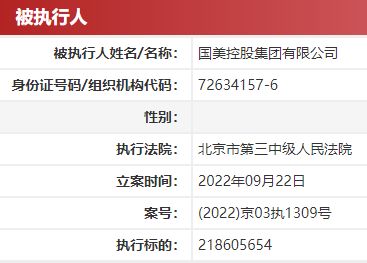 中国执行信息公开网显示,9月22日,国美控股集团有限公司新增一则被执行人信息,执行标的约2.186亿元,执行法院为北京市第三中级人民法院。