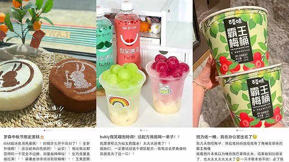 2019年3月,美食博主密子君在微博发布了一条关于“葡萄果冰”的视频内容,随后罗森就在门店上线了“葡萄冰”产品,并且邀请小红书、抖音和微博等不同平台的美食博主围绕产品输出美食评测内容。一时间,“罗森葡萄冰”成功引发全网热议,一跃成为2019年夏天最火的爆款产品之一。除“罗森葡萄冰”外,2017年走红的双蛋黄雪糕、冰皮月亮蛋糕以及今年爆火出圈的“一整根熬夜救命水”,也都是出自罗森的手笔。