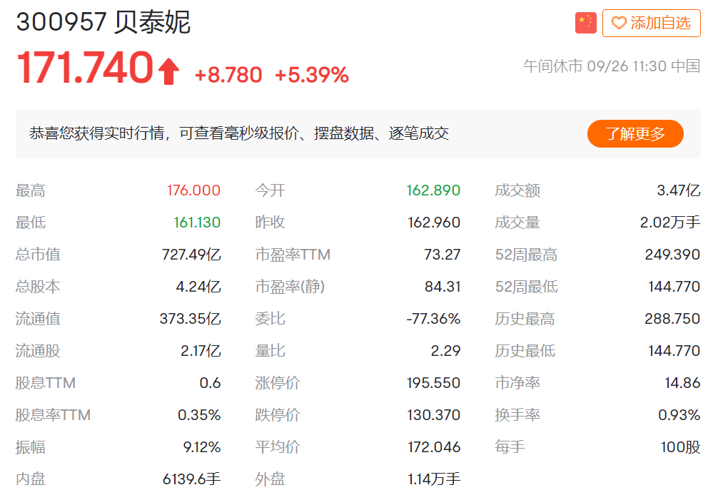 从二级市场表现看,对标同类企业,贝泰妮目前73.27倍的市盈率,依旧高于上海家化的37.82倍,丸美股份的50.43倍以及珀莱雅的68.72倍。