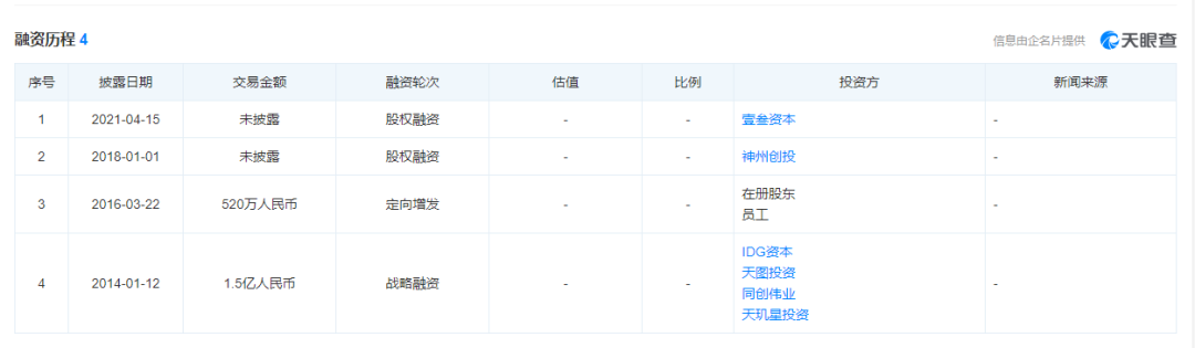 天眼查显示,八马茶业成立于1997年,2014年至2021年期间,公司共披露了4笔融资,投资方有IDG资本、天图投资、同创伟业、神州创投、壹叁资本等。