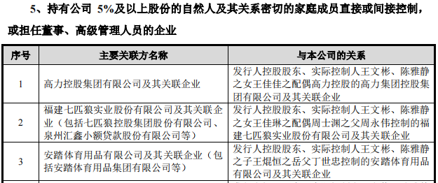 招股书显示,安踏、七匹狼和高力集团除了与八马茶业有小额的关联交易之外,对方并不持有拟上市主体八马的股份。