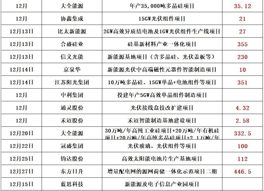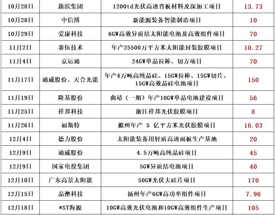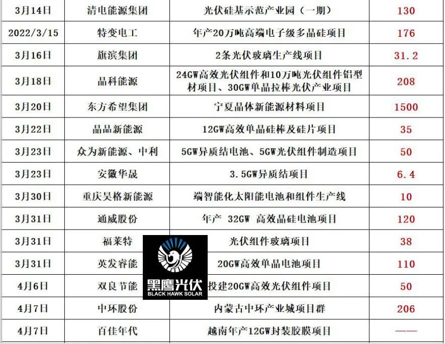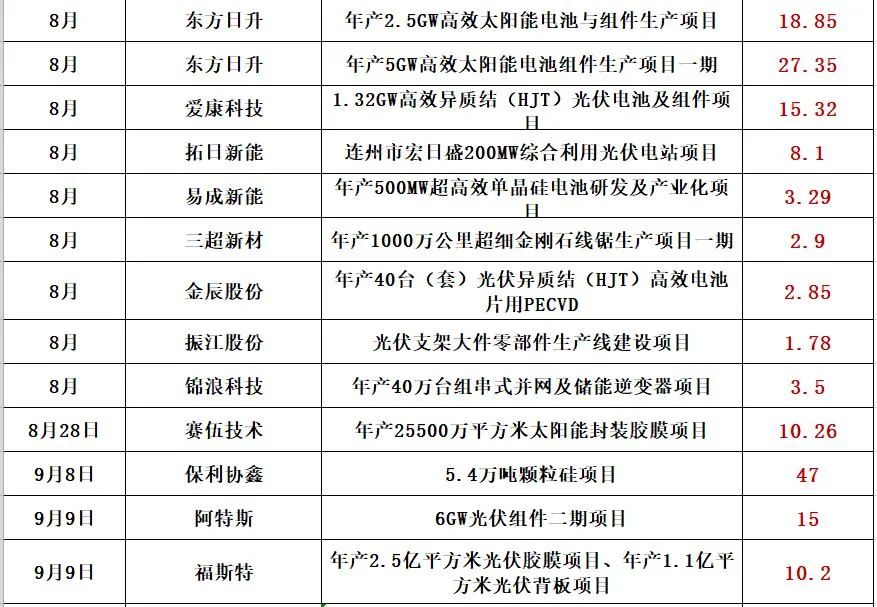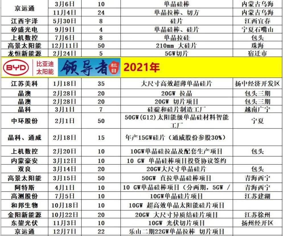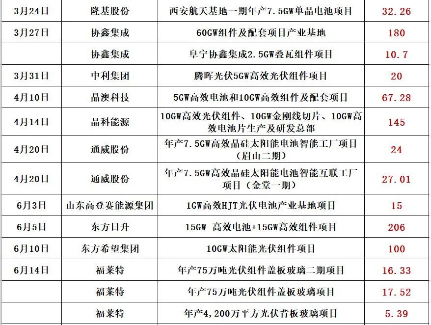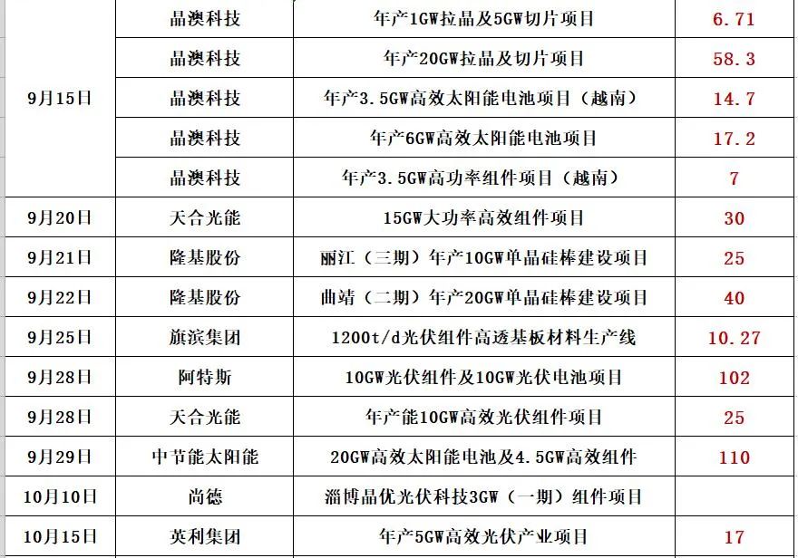 资本的疯狂、政府的热情、企业的雄心促进产业链加速发展扩大。狂热之下,未来光伏出现阶段性产能的绝对的、严重的过剩成为必然。“过剩”通常是竞争市场的常态,但“绝对的过剩”或巨量的过剩,必将引起惨烈竞争和强烈的洗牌。据黑鹰团队统计,过往三年中,可统计的光伏产业的扩产(公告)投资规模已超过20000亿,其投资环节涉及硅料、硅片、电池、组件、光伏玻璃等等几乎所有环节。最新的消息是,通威股份拟在盐城市投资25GW高效光伏组件项目,预计固定资产投资约40亿元。同期消息,天合光能拟投资60亿,在淮安签约15GW电池片和15GW组件项目!往前,宏翎投资95亿在乌鲁木齐米东区布局10万吨N型高纯多晶硅;8月底消息,陕煤投资182亿建设建设10万吨工业硅、10万吨多晶硅、20GW单晶项目;8月17消息,通威股份拟斥资280亿扩产40万吨高纯多晶硅项目。