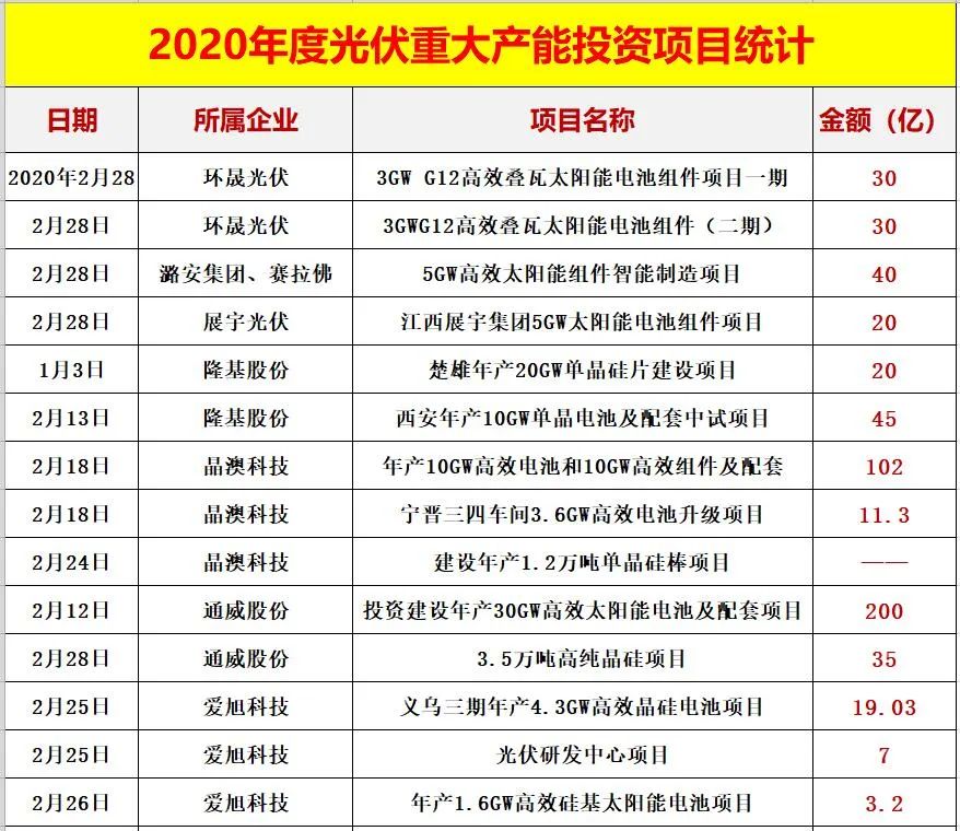 四、2020光伏新项目投资超4000亿!单个项目投资额在10亿元以上的就多达82个,50亿元以上的有22个。