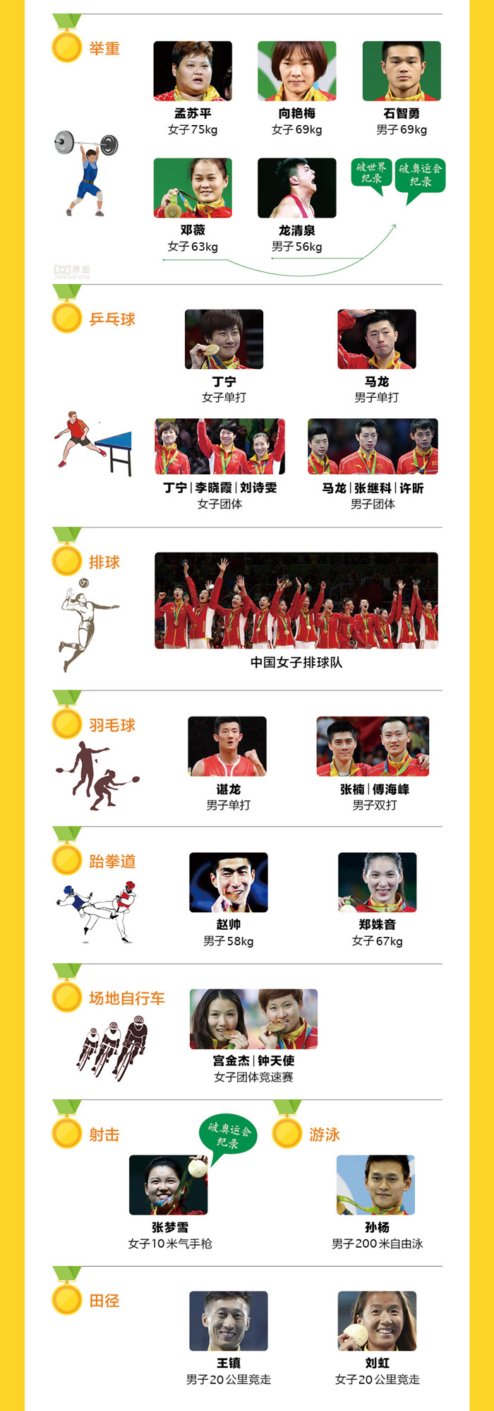 【图解】里约之战中国队勇夺26金18银26铜 有多少运动员成了“奥运传奇”