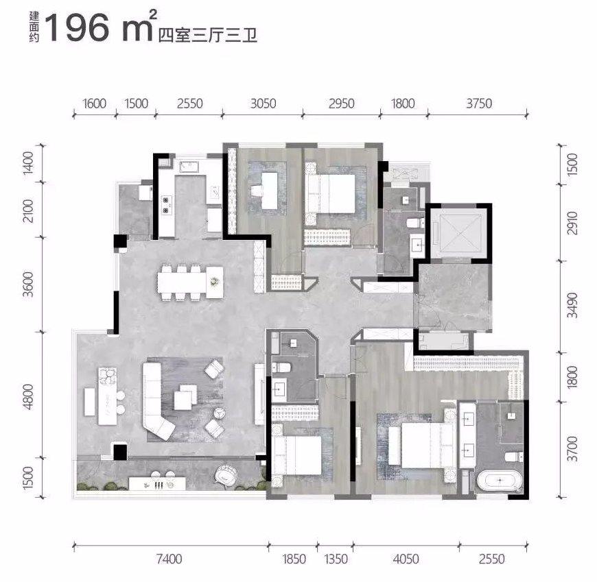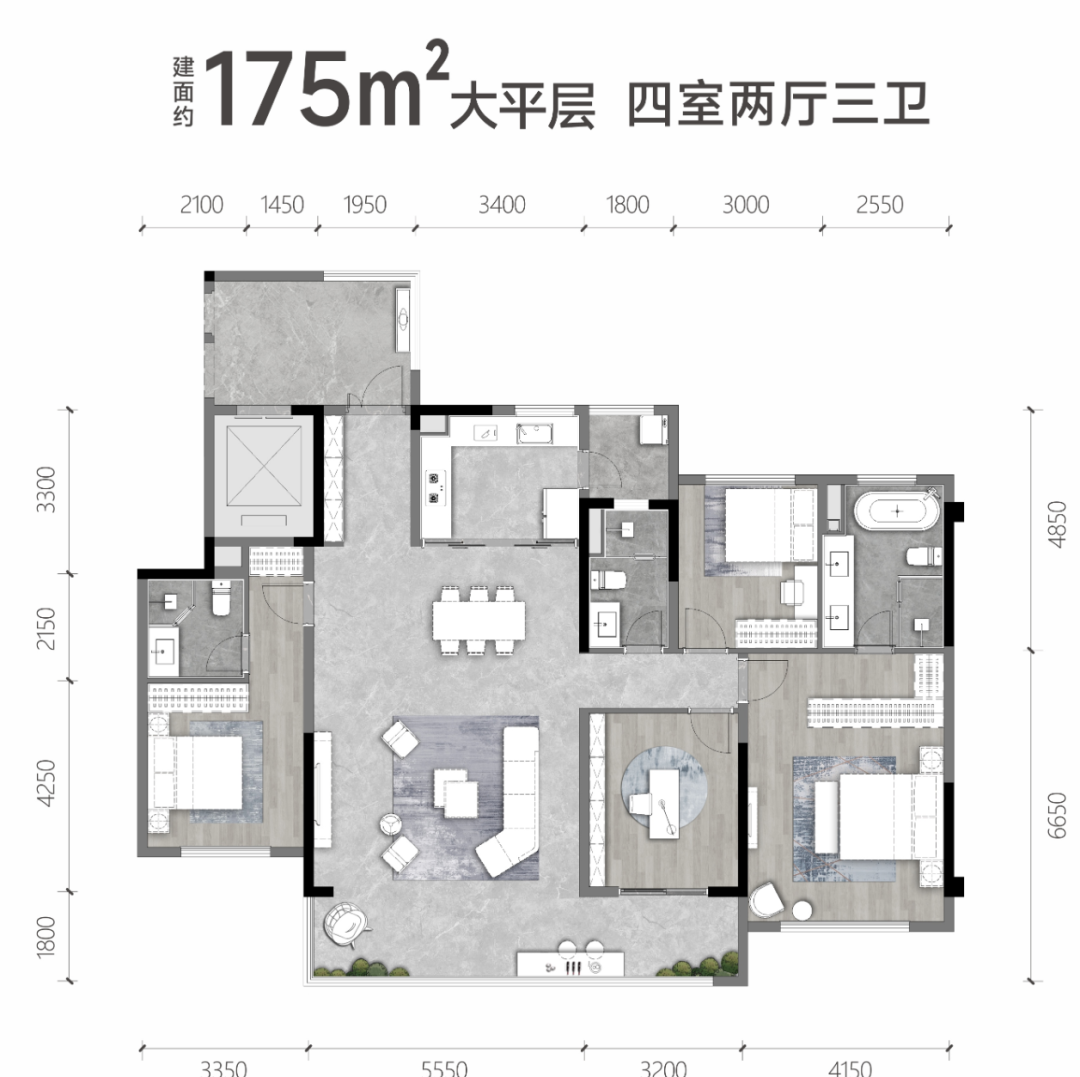 想要追求更大尺度的朋友,一定要看看建面约175㎡的户型。