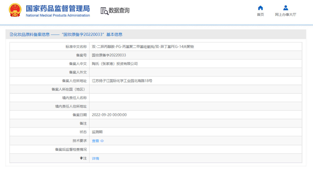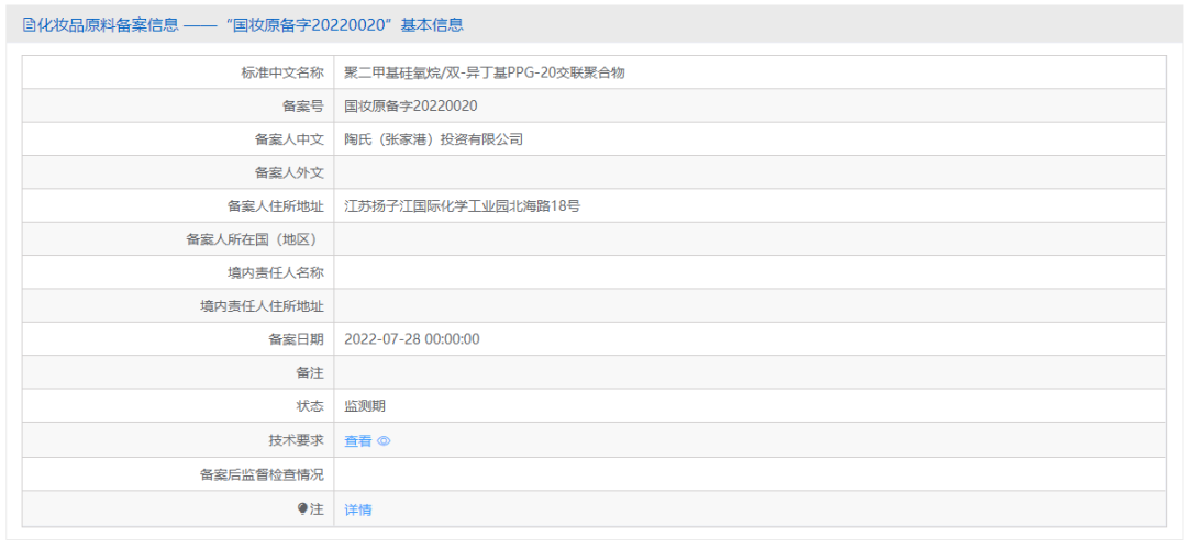 据悉,这是陶氏(张家港)投资有限公司在2022年完成的第三个化妆品原料备案。