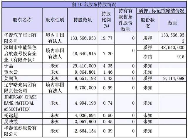 ▲华泰汽车前十大股东,图片源自公司2022年一季报。