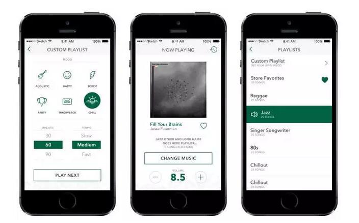 2016年1月开始,星巴克宣布和著名的流媒体音乐服务提供商Spotify合作,这算是星巴克第一次将会员体系开放给第三方,而这第三方,正是音乐服务。。只要使用星巴克app的用户,都可以通过它很快侦测到店铺中播放的音乐,将其储存在Spotify曲库中供日后播放;也可以为其点赞投票,以及分享给朋友们。