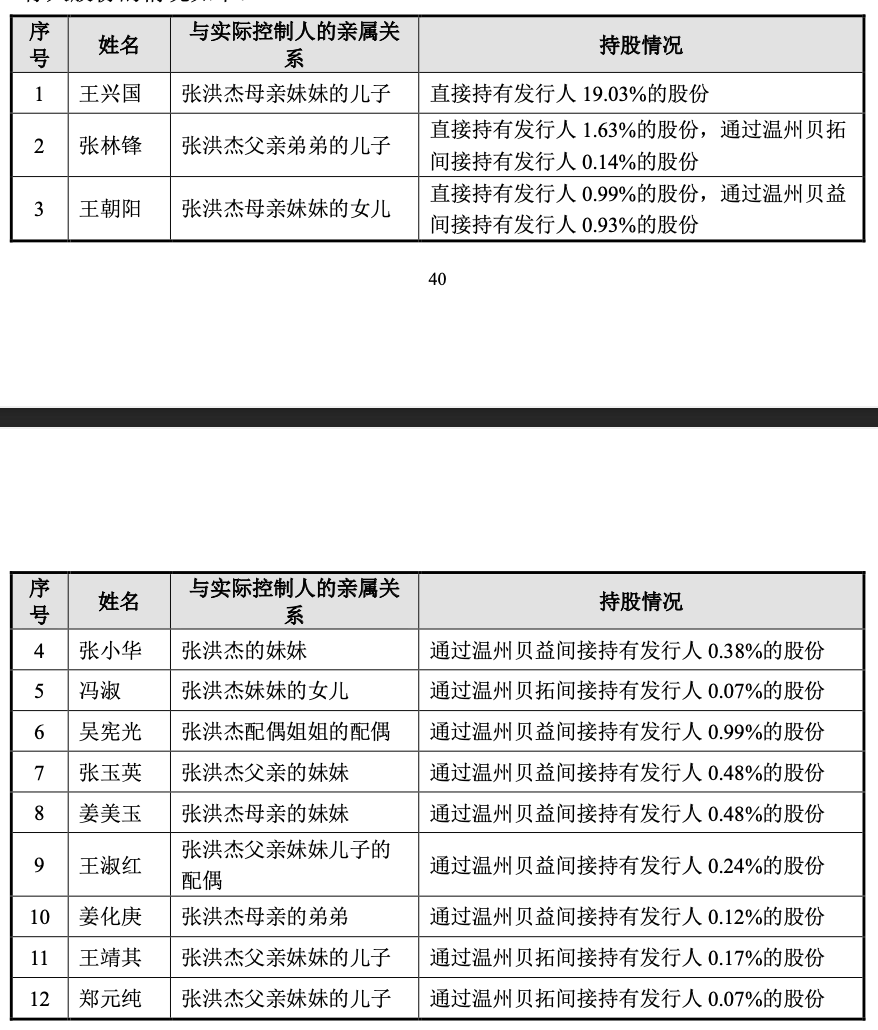 但事实上,家族持股远不及上图比例,根据一轮问询回复意见,张洪杰的亲属直接及间接合计持有公司25.72%股份。