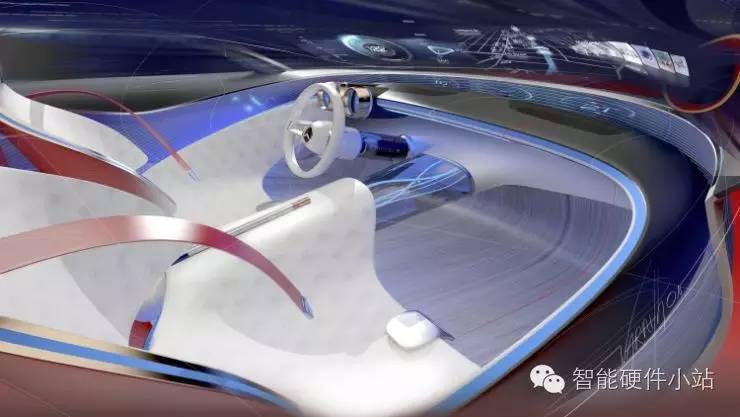 Vision 6的车身内部更是充满了科技感。前排视角非常宽敞,行车信息会通过虚拟现实的方式投射在挡风玻璃上。