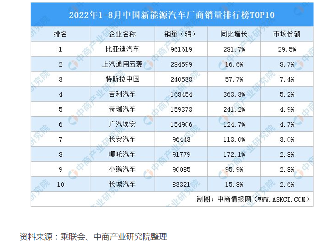 中汽协数据显示,2021年,我国新能源汽车销量为352.1万辆。今年以来,虽然新能源市场整体销量持续走高,2022年前8个月,国内新能源汽车产销量分别达到397万辆和386万辆。