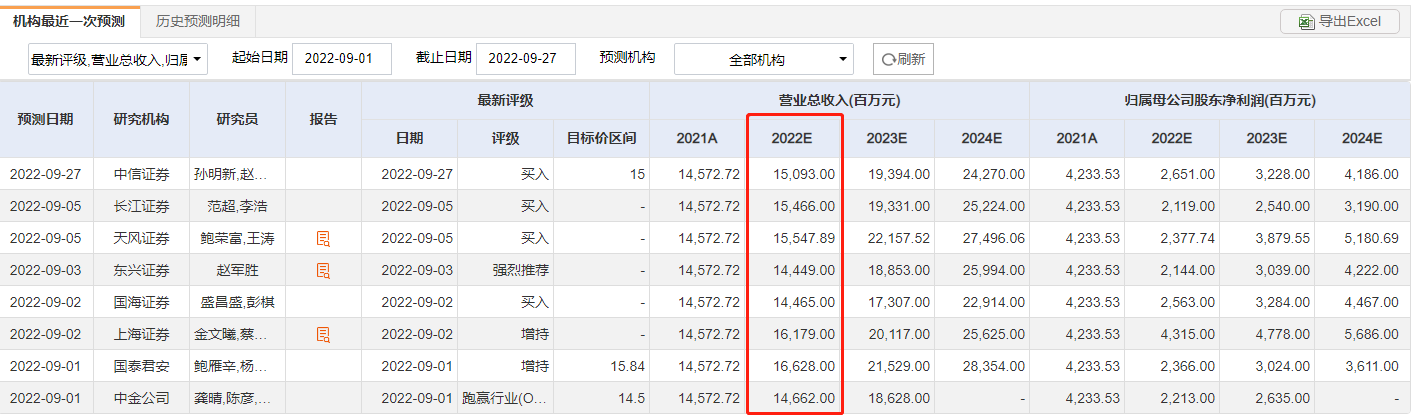 这一数据明显低于市场预期。iChoice数据显示,9月共有8家券商对旗滨集团进行评级,预计2022年营业总收入在144.49亿元-166.28亿元不等,均远高于此次持股计划的考核标准。