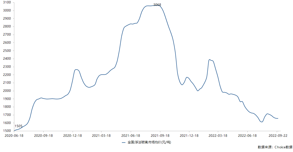 不过随着各大玻璃企业新增产线的点火投产,浮法玻璃价格相较于高点已出现明显回调。iChoice数据显示,全国浮法玻璃市场均价于2021年9月达到高点,约为3068元/吨;最新价格为1657元/吨,相较于高点跌去46%。