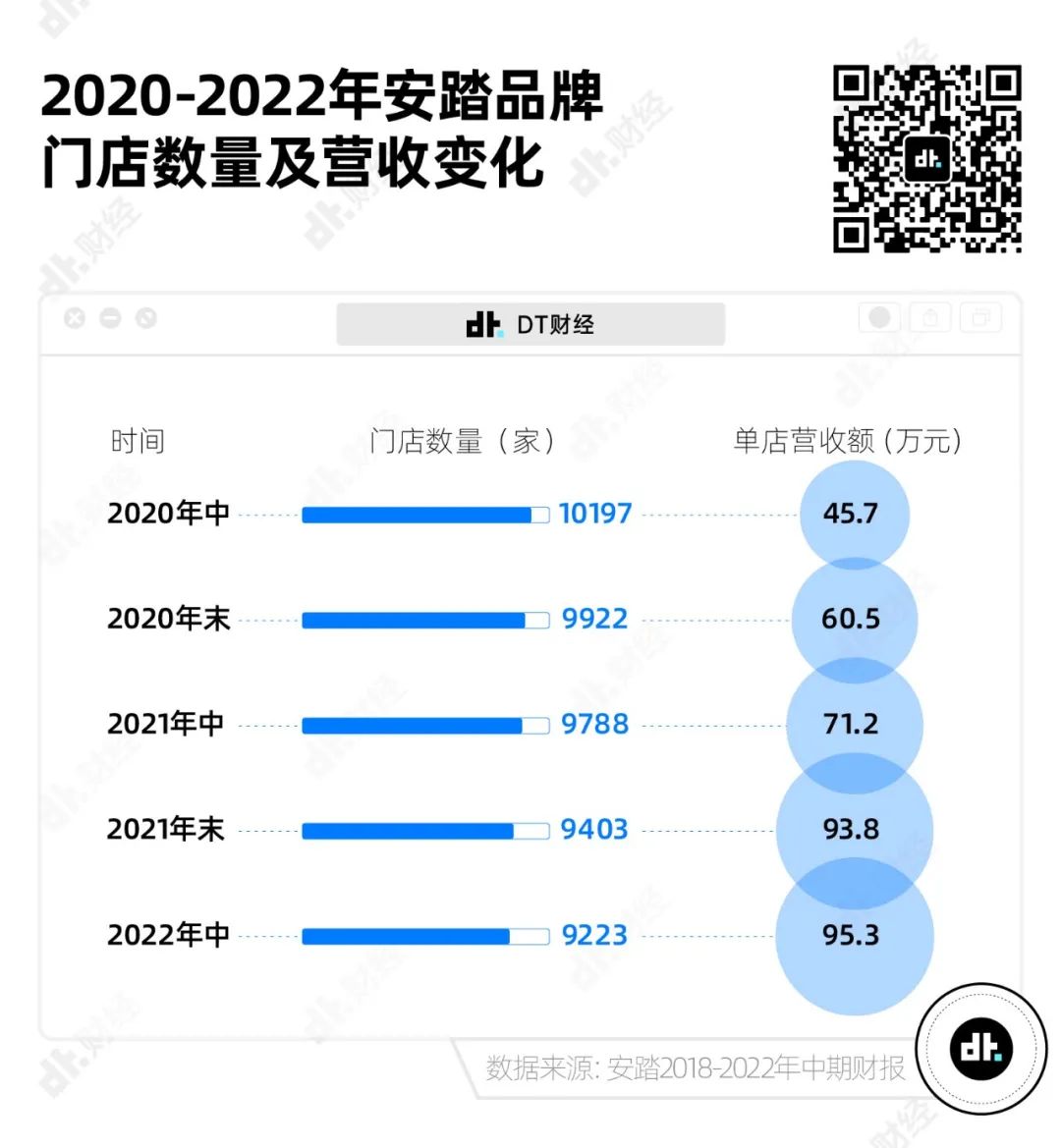 可以看到,安踏品牌的单店营收迅速增长,从2020上半年的46万增长至2022上半年的95万。因为前面提到的模式转换原因,我们很难通过营收数字的提升推导出销量的提升程度。