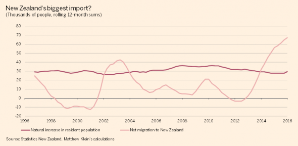 移民数量的增长给新西兰的房地产和就业造成了影响。根据新西兰储备银行的数据,新西兰房价比千禧年增长了约3倍,比2011年增长了近40%。新西兰有三分之一人口居住在首都奥克兰,这里的房价在5年内翻了一番。