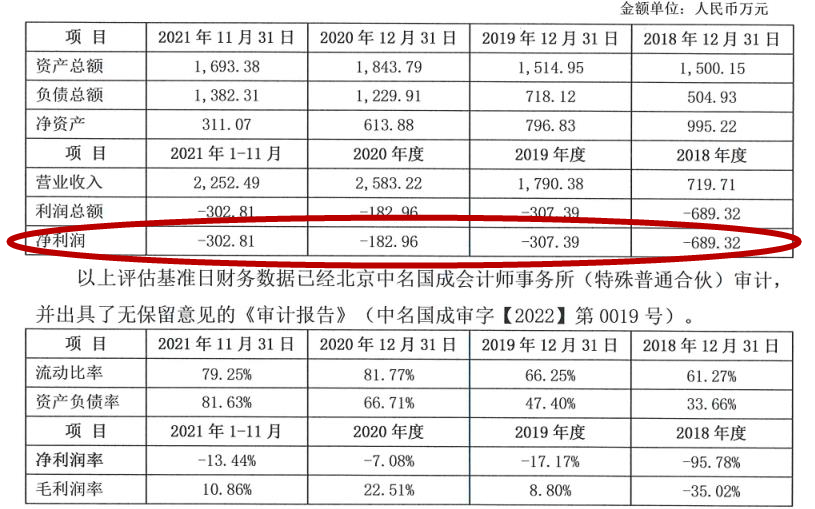 据披露,截至2021年11月30日(原文为“11月31日”),唐山弘新医院的净资产仅为311.07万元,前11个月净利润亏损302.81万元。纵观2018年至2021年,该医院净利润分别亏损689.32万元、307.39万元、182.93万元、205.64万元,资产负债率也创下81.63%的新高,净利润率为-13.44%。直到2022年前三个月,这家医院的业绩才终于扭亏为盈,实现营业收入934.25万元,净利润19.61万元。