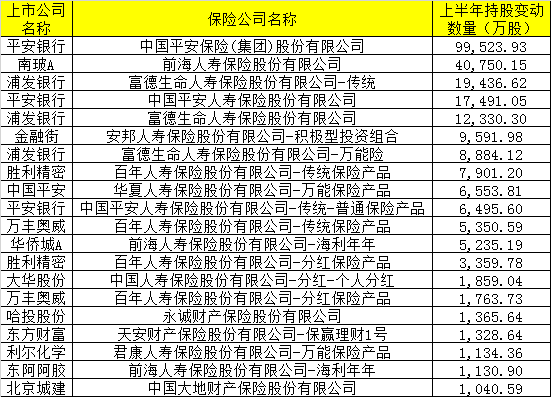 界面新闻根据wind数据整理出了今年上半年险资增持1000万股以上的上市公司,见下表: