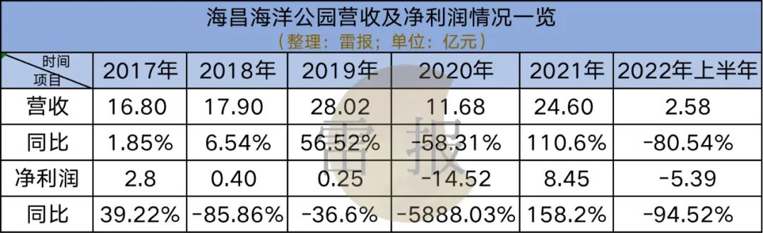 2017-2018年,该公司营收的同比增长水平均在10%以内,虽然由于2018年11月上海海昌海洋公园开业带来一个完整运营财年的营收,致使2019年的收入有所增长,但2020年年初疫情爆发,该年营收又同比下滑近60%,营收数额甚至比2017年还要低出5个亿,而且净亏损达到了惊人的14.52亿。