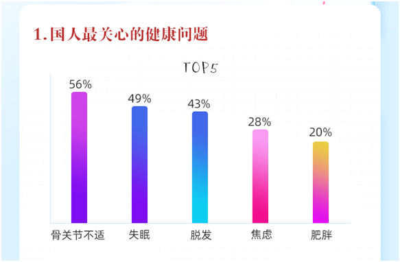 根据阿里健康研究院发布的《2021骨关节健康洞察报告》显示,骨关节问题已超越失眠、脱发,成为困扰国民健康的十大问题之首。