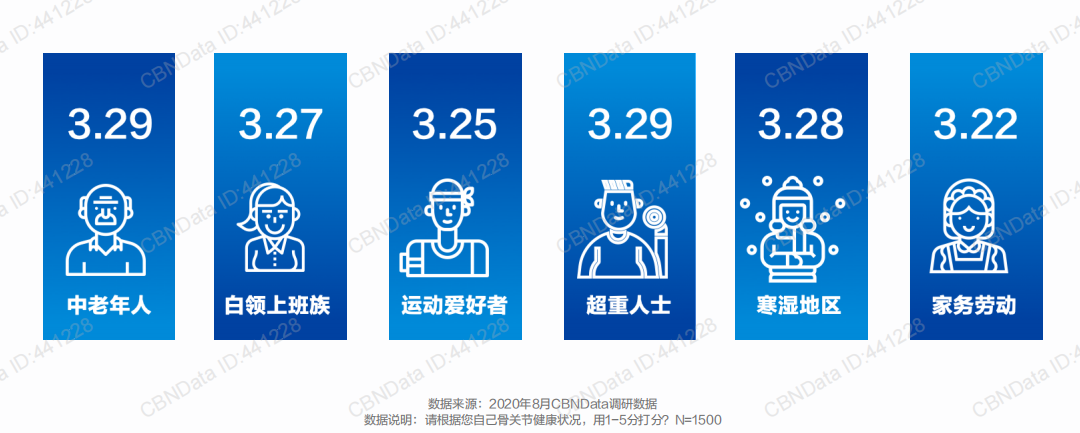 不同圈层人群对于骨关节健康状况自评分 数据来源:骨关节健康白皮书,CBNData