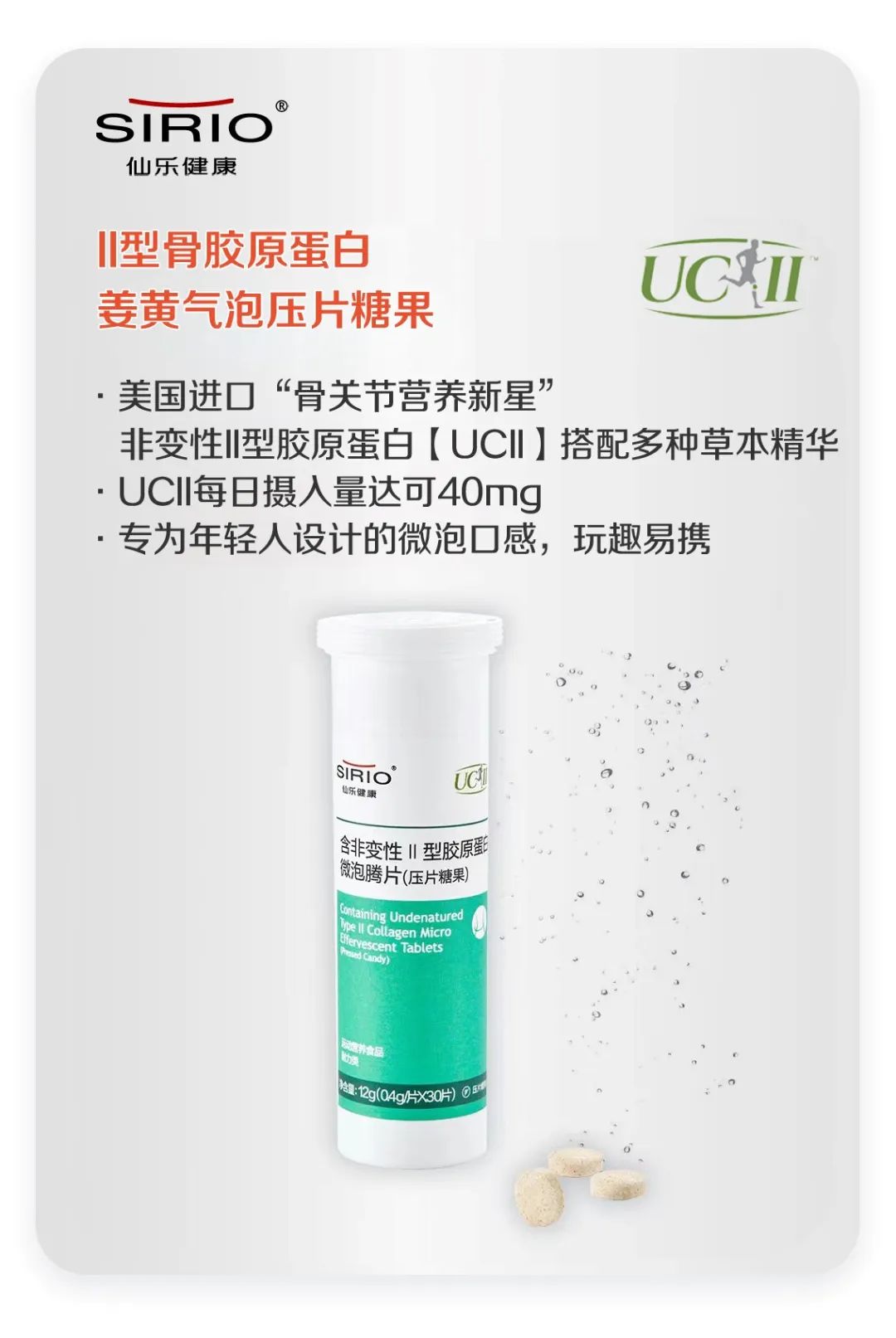 在这样的诉求下,诸如胶原蛋白、姜黄等具备多效功能的超级成分更受年轻人青睐。仙乐健康为运动人士提供的专业解决方案II型骨胶原蛋白姜黄气泡压片糖果,综合了专业性和多效性。选用支持细胞再生的骨关节营养新星非变性胶原蛋白UCII搭配姜黄、葛根等草本精华组合成的产品,助力运动场景下的骨骼关节呵护;在剂型设计上,仙乐健康也紧扣年轻及运动人士的使用需求,采用具有微泡口感的片剂剂型,小瓶包装,便于运动人群日常携带。
