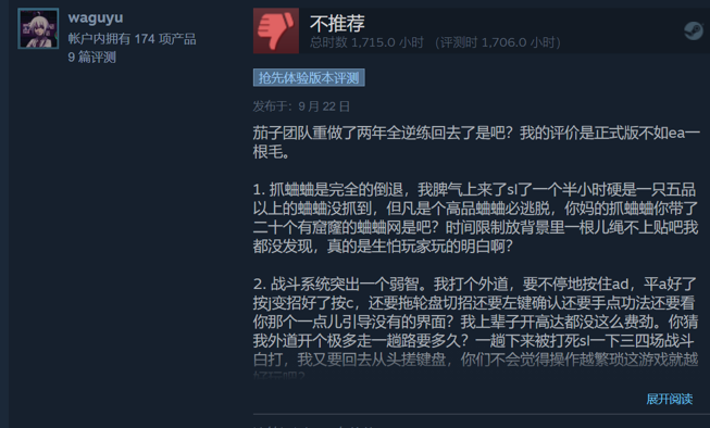最严重的是游戏有大量恶性BUG,导致玩家大量坏档、卡进度,游戏都没办法正常运行更不用说游玩体验了;