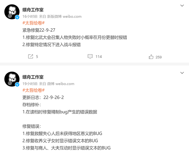 但9月到来后,螺舟工作室先是在9月5日宣布招募500人的玩家测试以排除BUG,随后的公告里又改变了说辞,从4月公告里的“正式版定档”变成了发布新版本。“新的《太吾绘卷》将在修复完大部分BUG达到稳定版本后才结束抢先体验”,螺舟工作室还在公告里坦诚新版本会有非常多有待修复的BUG和问题。