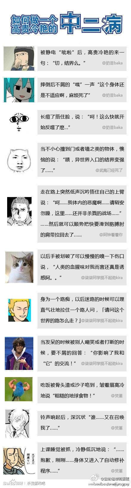 讲真,一些中二话语一定要和圈内懂梗的人讲,要是对方get不到点的话会使氛围瞬间尴尬。