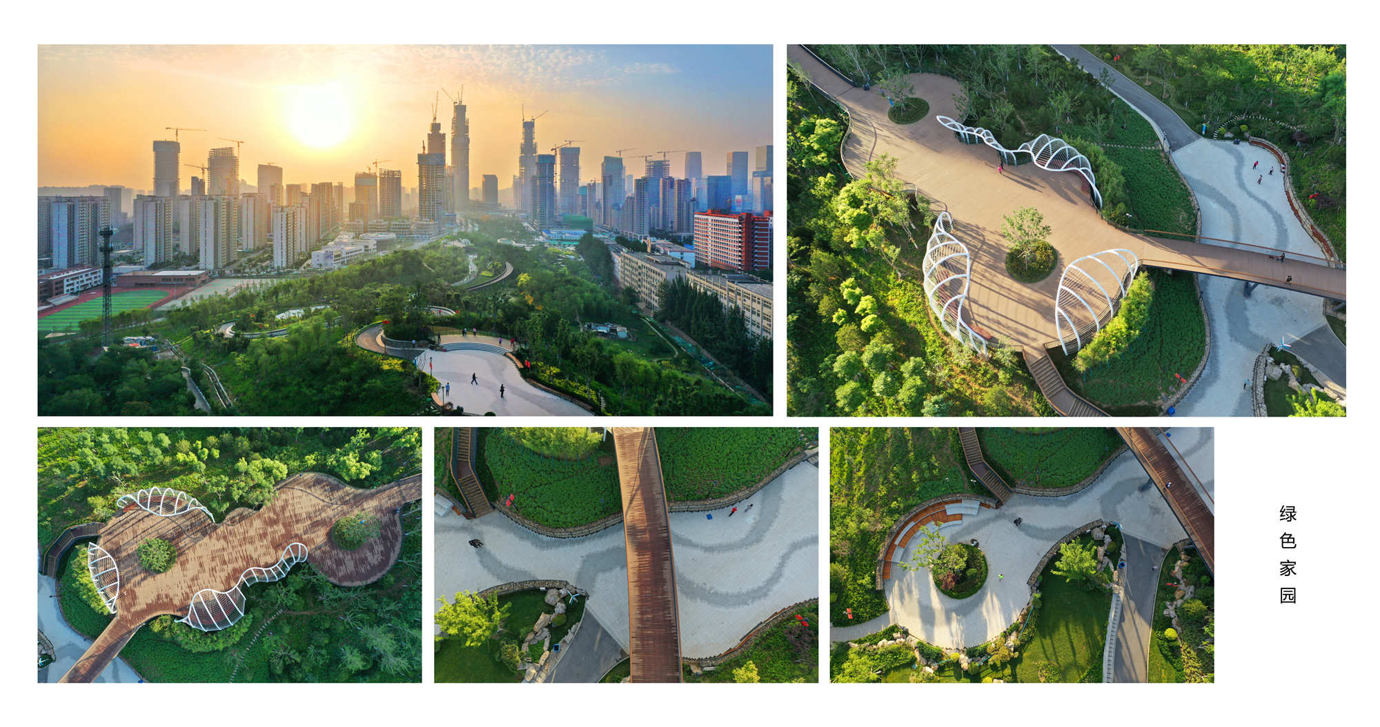 产城融合还体现在绸带公园的设计和引山入心的打造上。南北约2公里的绸带公园,荷花湖、柳叶亭相映成趣;五顶茂岭山步行栈道与绸带公园垂直贯穿,实现东西向“引山入心”。如果清晨站在五顶茂岭山的观景平台向东望去,洒满了霞光的“五指山”金灿灿地迎面而来,似乎正诉说着这座城市建设与发展的故事。