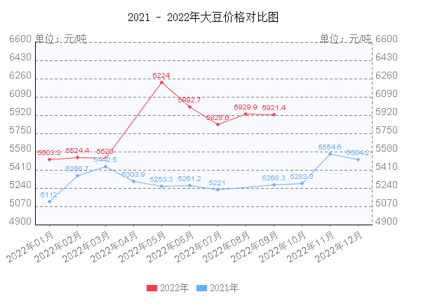 以大豆为例,中国粮油信息网数据显示,去年9月大豆价格为5268.3元/吨,到今年9月已经涨到5921.4元/吨,虽然较前几个月略有回落,但仍维持在历史高位。