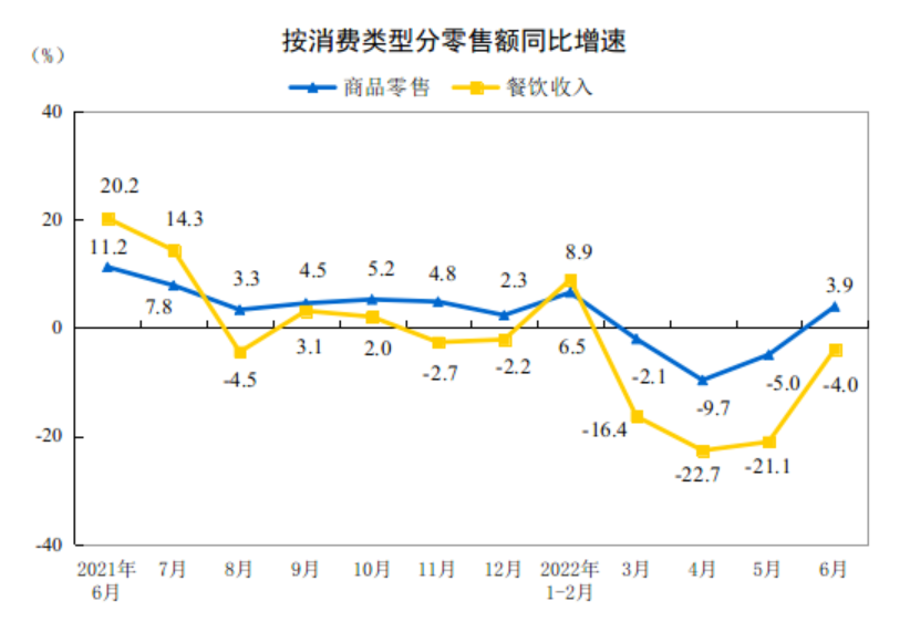 从前半年社零数据看,餐饮收入增速持续回落,目前恢复仍处于低位。数据显示,6月份餐饮收入3766亿元,同比下降4.0%;上半年餐饮收入20040亿元,同比下降7.7%。