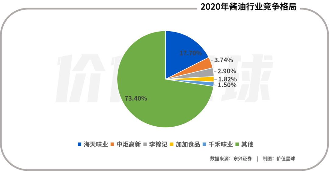 最后,调味品行业壁垒并不高,这让很多对手都觊觎这块蛋糕。酱油行业内不仅有厨邦食品、千禾味业、加加食品、李锦记等老牌企业,还有金龙鱼、鲁花、双汇、新希望等这类擅长打价格战的“跨界强者”。