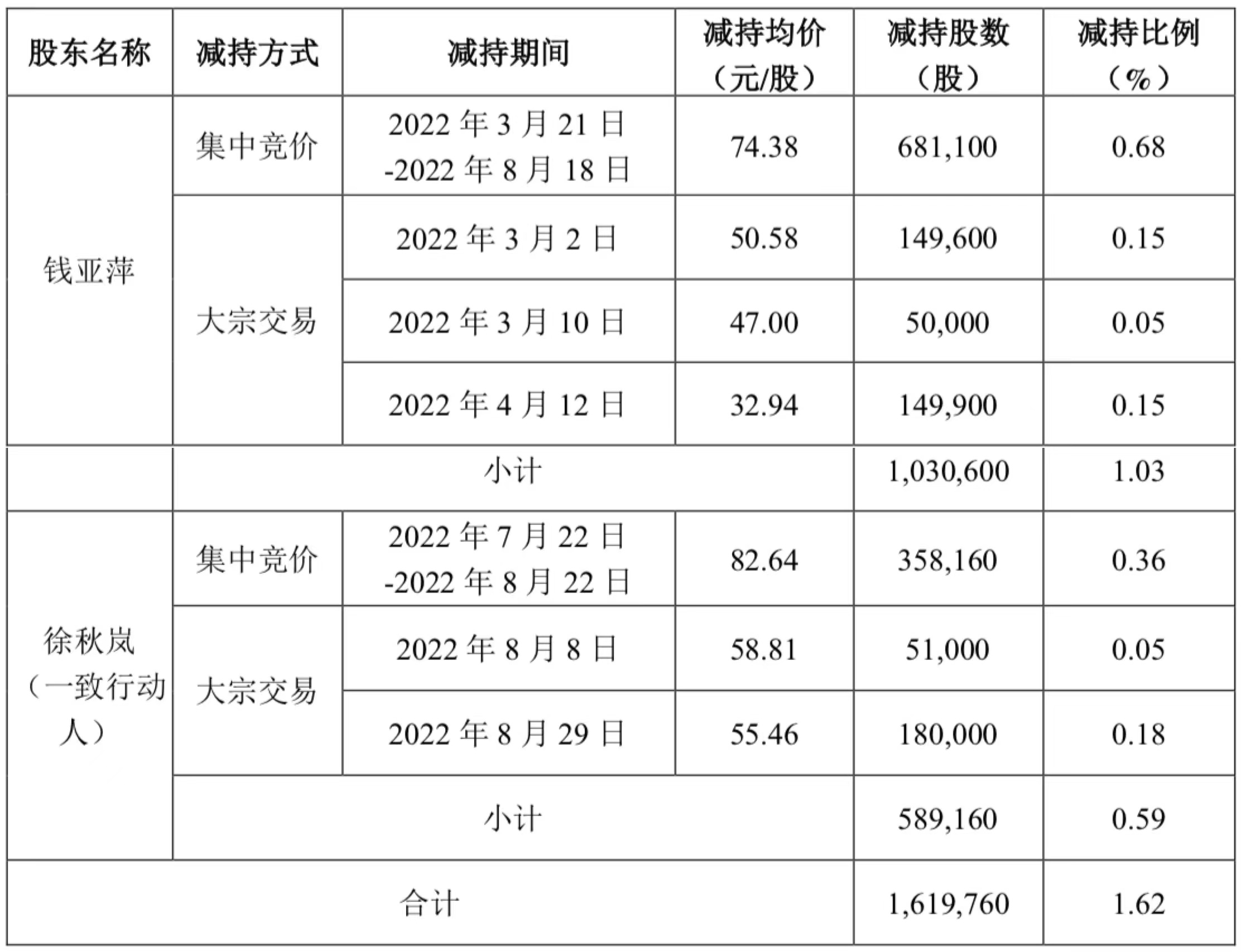 截至9月17日,钱亚萍和徐秋岚共减持帝科股份161.98万股,占总股本的1.62%。