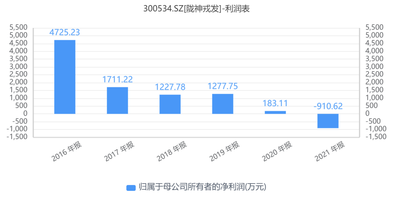 实际上,陇神戎发自身业绩早已陷入低谷。自2016年上市以来,公司业绩持续下滑,上市当年净利润为4725万元,第二年便骤降至1711万元,而后业绩停滞不前。2020年实现净利润仅183万元,2021年更是首次陷入亏损,为-911万元。