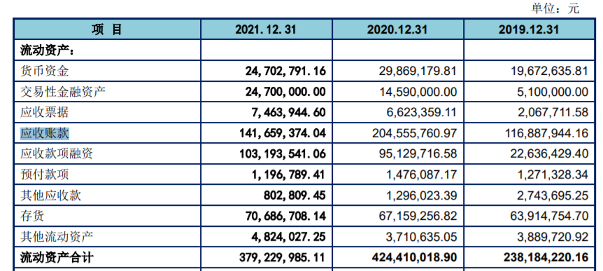 此外,东田微应收帐款越来越多,其中相当部分也来自欧菲光。2017年到2021年,东田微的应收账款分别为5991.05万元、5239.6 万元、1.17亿元和2.04亿元和1.42亿元。欧菲光在2018年的应收账款列表中排名第二,金额为947.24万元,占比17.16%;2019年及2020年,均排名第一,金额分别为3938.7万元、5676.42万元,占比分别为31.99%,26.35%。