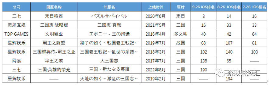 SLG可以说是广州游戏公司出海日本市场的必杀技,8家上榜公司中有5家拥有拿得出手的SLG产品。