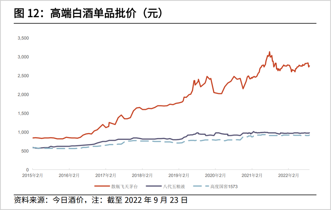 五粮液直销模式的大幅放缓,也从侧面说明了提价不能有效对终端价格进行传导。虽然终端价格实现了对茅台的对标,但成交价几乎“原地不动”。