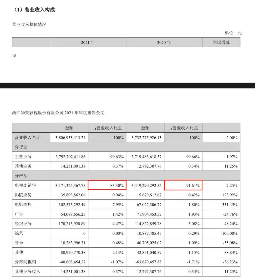 (2020、2021年华策电视剧销售业务营收占比,图源:华策影视2021年报)