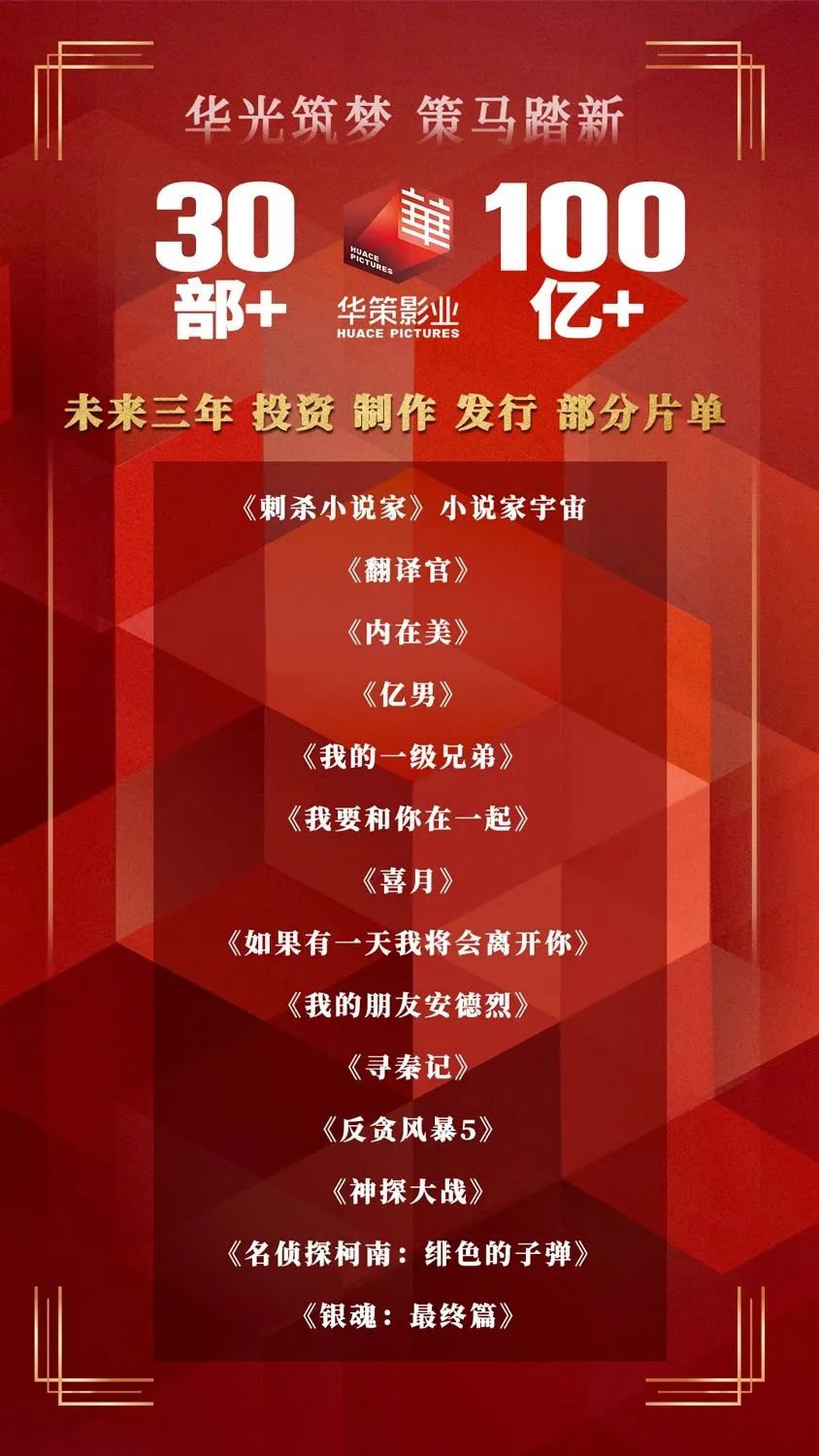 去年,在春节档依靠《刺杀小说家》吃到甜头的华策召开了一场高调的片单发布会,立下3年投资、制作、发行30部+电影,达成100亿+票房的豪言壮志。